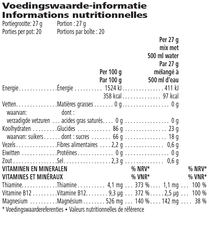 - Bij voorkeur consumeren tijdens fysieke inspanning.